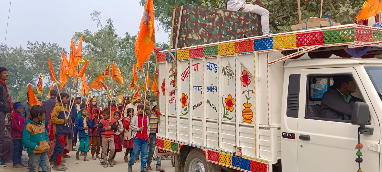 अयोध्या रामलला के प्राण प्रतिष्ठा के शुभ अवसर पर निकाली गई भव्य शोभा यात्रा, बांटे गए अक्षत