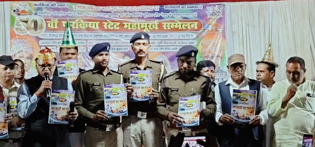JNA/R R VERMA पत्रकार नगर,खगड़िया। समाहरणालय खगड़िया के पूर्व कार्यालय अधीक्षक स्मृति शेष कमलेश्वरी प्रसाद वर्मा सभागार, नेशनल स्कूल परिसर में गोल्डन जुबली 50 वां फरकिया स्टेट महामूर्ख सम्मेलन का आयोजन हर्षोल्लास के साथ मनाया गया। भाग्यशाली विजेता बने ज़िला पदाधिकारी नवीन कुमार जिन्हें महामूर्खधिराज और पुलिस अधीक्षक राकेश कुमार को मूर्खाधिपति की उपाधि से नवाजा गया। सम्मेलन का उद्घाटन समाजवादी तरीके से हुआ, जिसमें शामिल थे नगर थानाध्यक्ष सह पुलिस इंस्पेक्टर राकेश कुमार गुप्ता, पुलिस सब इंस्पेक्टर राहुल कुमार, स्वागताध्यक्ष सह वरिष्ठ पत्रकार डॉ अरविन्द वर्मा, संस्थापक व पत्रकार अरुण वर्मा, सुरेश पोद्दार, किरणदेव यादव आदि। स्मारिका का विमोचन भी किया गया। आयोजित रंगा रंग कार्यक्रम का संचालन भारत सरकार द्वारा बेस्ट ऐंकर अवॉर्ड से पुरस्कृत डॉ अरविन्द वर्मा ने किया और जायकेदार बनाने में अहम भूमिका का निर्वाह किया। डॉ अरविन्द वर्मा ने इस सफरनामे को यादगार बनाने में जिन महामूर्खों ने महामूर्ख सम्मेलन के मंच पर आकर, उपाधियां पाकर अपनी अपनी प्रस्तुति से श्रोताओं और दर्शकों के दिल में छा गए थे। उनमें प्रमुख नाम है डिस्ट्रिक्ट जज उमाशंकर प्रसाद, ज़िला पदाधिकारी सुधीर त्रिपाठी, दीपक कुमार सिंह, जय सिंह, राजीव रौशन आलोक रंजन घोष, पुलिस अधीक्षक में बी बी प्रसाद, अनिल कुमार सिंह, मिट्ठू प्रसाद, डीडीसी शिव प्रसाद तथा एसडीओ आदित्य प्रसाद आदि। सम्मेलन के स्थापना कल से अबतक के सफरनामे की प्रस्तुति करते हुए महामूर्खों के बीच उपाधियों की रेवड़ियां संस्थापक एवं पत्रकार अरुण ने ठहाकों के बीच प्रसारित किया। सोशल मीडिया कर्मियों ने इस ऐतिहासिक कार्यक्रम का सीधा प्रसारण कर देश विदेश के और ध्वनिविस्तरक यंत्र से पूरे शहर के लोगों को आनंदित किया। दरभंगा की कवयित्री रितु प्रज्ञा एवं रूपा ने अपनी काव्य पाठ से श्रोताओं लोटपोट कर दी। नए जमाने में नई अत्याधुनिक “नोट महिमा” आरती गाकर डॉ अरविन्द वर्मा ने दर्शकों को ठहाके लगाने पर मजबूर कर दिया। कपिकेश्वर कपिल, सुखनंदन बिहारी, विनोद जायसवाल की कविताएं सराही गई। कवियों, कवयित्रियों, कलाकारों और मीडियाकर्मियों को प्रशस्ति पत्र देकर स्वाग्याध्यक्ष डॉ अरविन्द वर्मा तथा संस्थापक अरुण वर्मा ने सम्मानित किया। सम्मेलन अति मनोरंजक बनाने में अरुण वर्मा, सोनी कुमारी, मधुबाला, पूजा डॉन, सिमरन कुमारी, लाडो कुमारी, प्रणव कुमार, कंचन नंदन हर्ष, अभिराज कुमार आनन्द, नेशनल गोल्ड मैडलिस्ट आदर्श कुमार, सुमित कुमार, आर के सिंह, सुरेश नायक, राजा वर्मा, अशोक वर्मा, मनोहर कुशवाहा, उमेश ठाकुर, गुड्डू ठाकुर, सुरेश पोद्दार, कौशल कुमार तथा प्रिंस कुमार (पूर्व सैनिक)
