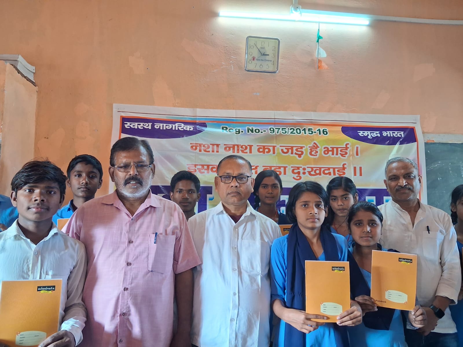 छात्र एंव छात्राओ को नशा मुक्त भारत की ओर से पाठ्य सामाग्री दिया