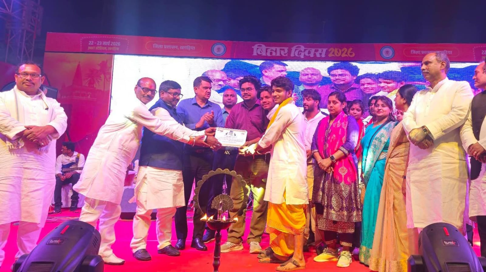 जब उनकी आवाज ने सुरों का जादू बिखेरा, तो आम हो या खास , हर कोई खुद को झूमने से रोक न सका। इस रंगारंग महफिल में स्थानीय प्रतिभाओं ने भी अपनी चमक बिखेरी। बचपन प्ले स्कूल, डीएवी, डेंजरस डांस एकेडमी और संसारपुर के नन्हे-मुन्ने और युवा कलाकारों ने बिहार गीत, छठ गीत और लोकधुनों पर ऐसी दिलकश प्रस्तुतियाँ दीं कि हर नज़र ठहर गई और हर दिल वाह-वाह कर उठा। स्थानीय गायकों में कमल भारती और मनीष कुमार की सुमधुर आवाज ने भी समां बांध दिया। तालियों की गूंज ने उनके हुनर को खुलकर सराहा। कार्यक्रम के अंत में जिला पदाधिकारी, पुलिस अधीक्षक,सदर विधायक,उप विकास आयुक्त,नगर सभापति आदि सभी कलाकारों को मुख्य अतिथियों द्वारा प्रशस्ति पत्र देकर सम्मानित किया गया।यह एक खूबसूरत एहसास और एक यादगार लम्हा खगड़िया वासियों के दिल में गुदगुदाते रहेंगे। सदर विधायक बबलू कुमार मंडल ने स्थानीय छोटे बड़े कलाकारों की प्रतिभा को अद्भुत बताया वहीं फनकार अल्तमश फरीदी का खगड़िया की धरती पर अभिनन्दन किया। कहा आज यहां की माटी सांस्कृतिक गौरवगाथा से धन्य धन्य हो गई।