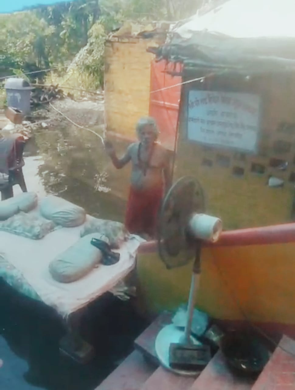 खगड़िया। धुना बाहर, किचेन बाहर, माता रानी के सामने मंदिर की सीढ़ी पर। बिल्कुल खानाबदोश की स्थिति हो गई है विंध्याचल यूपी से पधारे बाबा गुरु अलख। आए थे इस बार यूपी नहीं बिहार में ही अपने द्वारा स्थापित किए गए अष्टादश भुजेश्वरी मां दुर्गा मंदिर में ही नवरात्रि का पाठ और पूजन करेंगे। मगर, प्रकृति ने बाबा पर भी कहर बरपा दिया। निरन्तर हुए मूसलाधार बारिश की वजह से मंदिर परिसर तथा आश्रम जलमग्न हो गया। गंदे, नाले के पानी से धुना कक्ष भी डूब गया। 40 वर्षों पूर्व स्थापित किए गए तीन धुना, जिसमें एक मसानी, दूसरा वैदिक और तीसरा तांत्रिक विधि से हवन होता रहा है। चौबीस घंटे जलने वाला मसानी धुना सहित मां कामाख्या धुना को भी खुले आसमान के नीचे मां दुर्गा मंदिर की सीढ़ियों पर रखना पड़ा। बाबा गुरु अलख के साथ साथ उनके सभी चेला चटिया भी दृढ़ संकल्पित हैं कि चाहे जितना भी कष्ट होगा करेंगे मगर माता रानी के दरबार में ही नवरात्रि का पाठ करेंगे। अंतर्राष्ट्रीय आध्यात्मिक केन्द्र के संस्थापक डॉ अरविन्द वर्मा ने सरकार से मांग किया है ।
