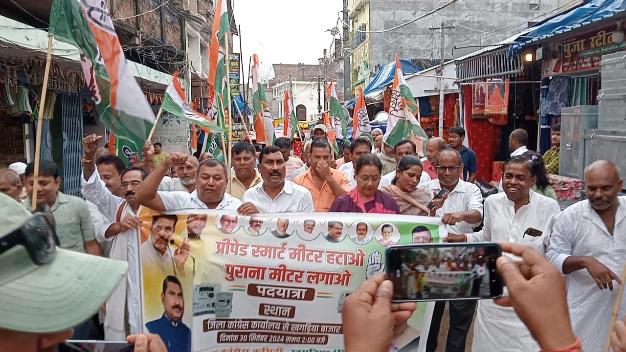 स्मार्ट मीटर लगाने वाली कंपनी और सरकार षड्यंत्र रचकर आम जनता को लूटने का काम कर रही है,और बिजली देने के बदले जबरन अधिक राशि वसूल रही है,इस प्रीपेड व्यवस्था से उपभोक्ताओं को कई कठिनाइयों का सामना करना पड़ रहा है,और अनाप शनाप रुपए वसूल रही है,जिनकी सुनवाई कहीं नहीं हो रही और आम लोग परेशान है। जिला अध्यक्ष गुड्डू पासवान ने कहा कि माननीय उच्चतम न्यायालय के अनुसार बिजली उपभोक्ताओं के सहमति से ही प्रीपेड स्मार्ट मीटर लगा सकती है,परंतु जबरन स्मार्ट मीटर लगाना एनडीए सरकार की हिटलर शाही परिलक्षित करती है,इस प्रीपेड स्मार्ट मीटर के मुद्दे पर कांग्रेस पार्टी सदन से सड़क तक लड़ाई लड़ेगी इसी परिपेक्ष में 2 अक्टूबर 2024 से 7 अक्टूबर 2024 तक सभी प्रखंड मुख्यालय एवं पंचायतों में जन जागरण अभियान कांग्रेसजनों के साथ मिलकर प्रखंड अध्यक्षों द्वारा चलाया जाएगा साथ ही दिनांक 16 अक्टूबर 2024 को खगड़िया जिला मुख्यालय स्थित बिजली विभाग कार्यालय के समक्ष धरना प्रदर्शन किया जाएगा एवं जिला पदाधिकारी खगड़िया को इस मुद्दे पर ज्ञापन सौंपा जाएगा। गुड्डू पासवान ने कहा कि जनहित के मुद्दे पर कांग्रेस पार्टी सरकार से आर पार की लड़ाई लड़ेगी और सरकार को उखाड़ फेंकने का काम करेगी। प्रेस वार्ता के बाद जिला पर्यवेक्षक अमिता भूषण एवं जिला अध्यक्ष गुड्डू पासवान के संयुक्त नेतृत्व में काफी संख्या में उपस्थित कांग्रेसजनों के साथ पद यात्रा निकाली गई जो खगड़िया नगर परिषद क्षेत्र के विभिन्न मार्गों से होते हुए आम लोगों से संपर्क कर जागरूक किया गया तथा शहीद प्रभु नारायण चौक खगड़िया के समीप पद यात्रा का समापन किया गया। उक्त मौके पर जिला उपाध्यक्ष कुमोद कुमार सिंह, बुद्धदेव प्रसाद यादव, शहीद कुमार,विनोद मालाकार, सूर्यनारायण वर्मा,एस सी प्रकोष्ठ के प्रदेश उपाध्यक्ष अविनाश कुमार अविनाश,महिला नेत्री इशरत खातून,जिला प्रवक्ता सह मीडिया प्रभारी अरुण कुमार अधिवक्ता,जिला महासचिव अर्जुन स्वर्णकार, मनोज मिश्रा, जयकांत सिंह निषाद, शोभाकांत चौधरी,प्रमोद राय, फिरोज आलम,अजीत मिश्रा,सुनील झा,एससी कांग्रेस जिला अध्यक्ष पप्पू कुमार पासवान,गोगरी प्रखंड अध्यक्ष रविन्द्र चौरसिया, पूर्व प्रखंड अध्यक्ष सुनील कुमार सिंह,मुरारी सिंह, कार्यालय मंत्री अवनी कुमार,चंदन कुमार यादव,विवेकानंद सिंह, मिथुन पासवान आदि उपस्थित थे।